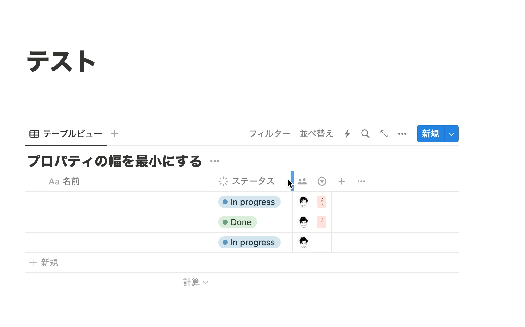\New/ DBのプロパティ幅を最小にする方法